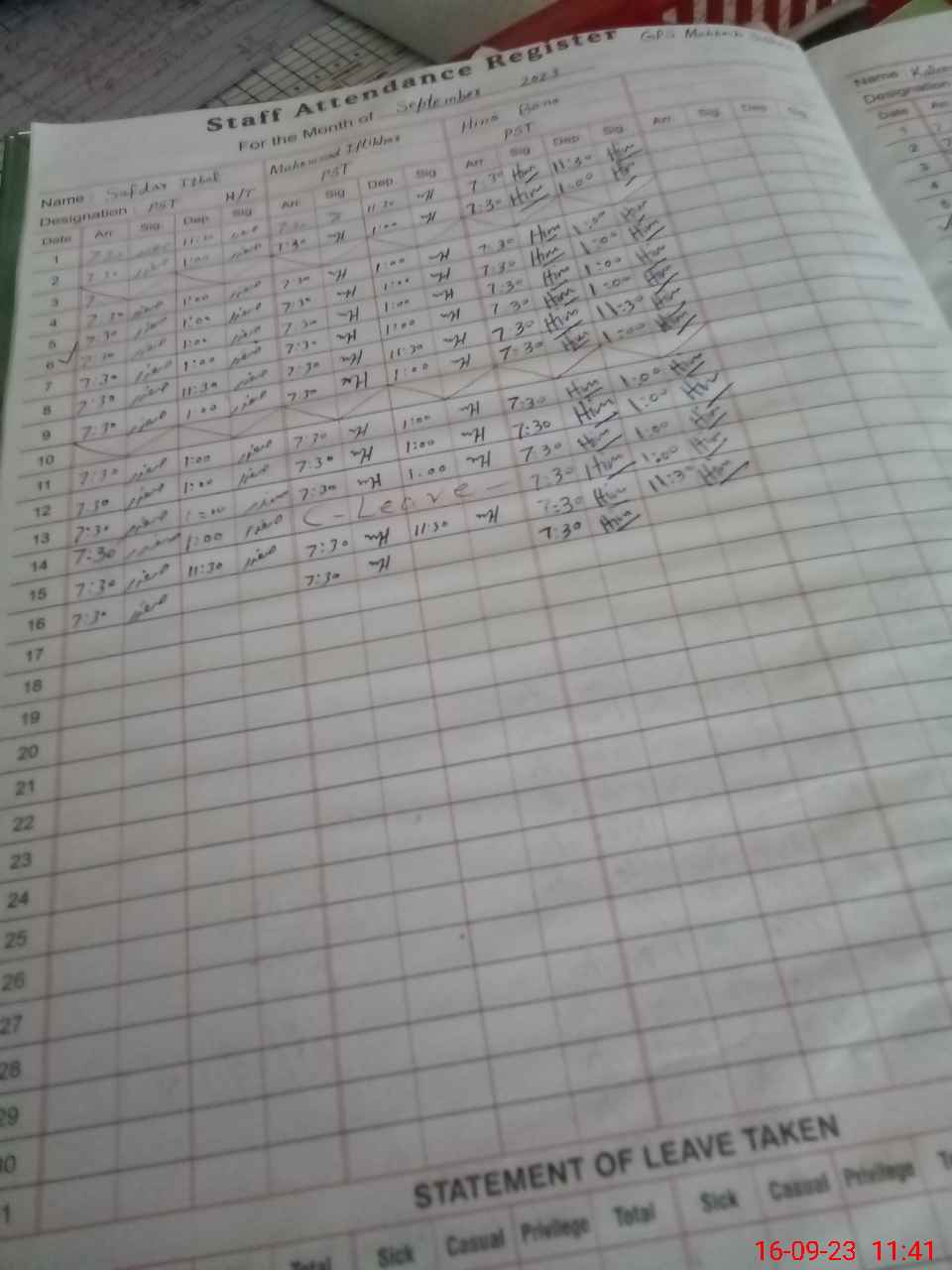 | Name: SA**** IQ**** Designation: (School Headmaster's/Headmistress's) PST/PTC/JV Phone/Cell Number: 03**** |