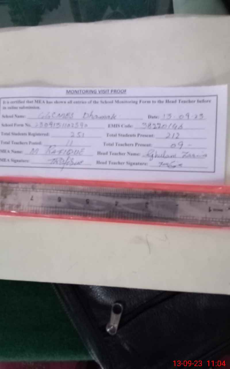 | EMIS Code: 38220146 | Name of School: GGCMHS DHAMAK | |||