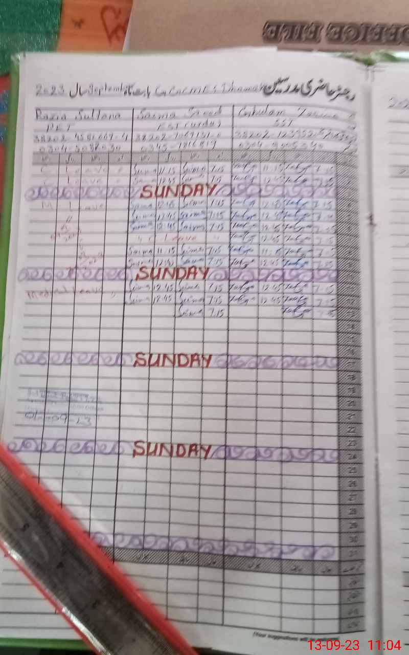 | CNIC | Full Name | Designation | R/C | Absence During Last Calender Month |