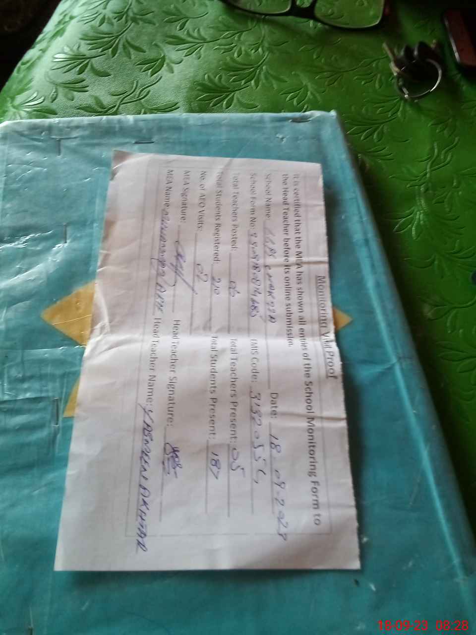 | Attendance Register | Head Teacher | MEA with School | Visit Proof |