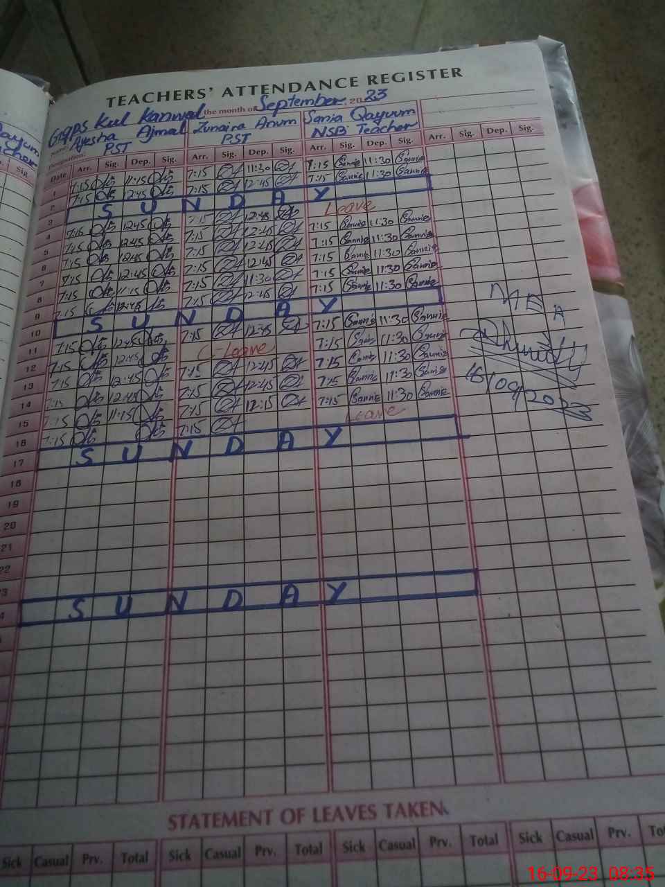 | Leave | Duty | Absent | Maternity | Medical | Ex- Pak |