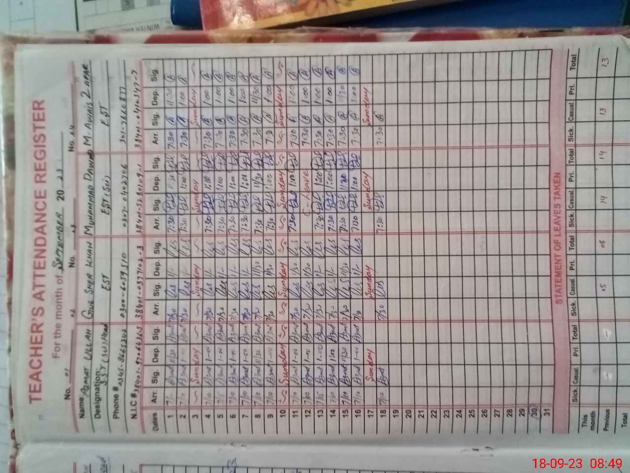 | Name: GU**** SH**** Designation: (School Headmaster's/Headmistress's) EST Gen Phone/Cell Number: 03**** |
