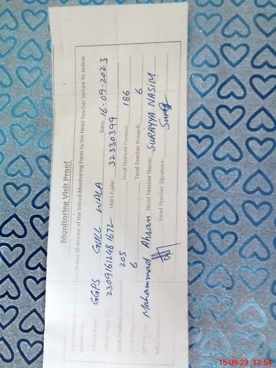 | EMIS Code: 32330399 | Name of School: GGPS GULL WALA | |||
