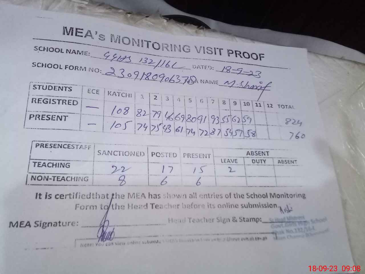 | EMIS Code: 36430104 | Name of School: GGHS 132/16-L, MIAN CHANNU | |||