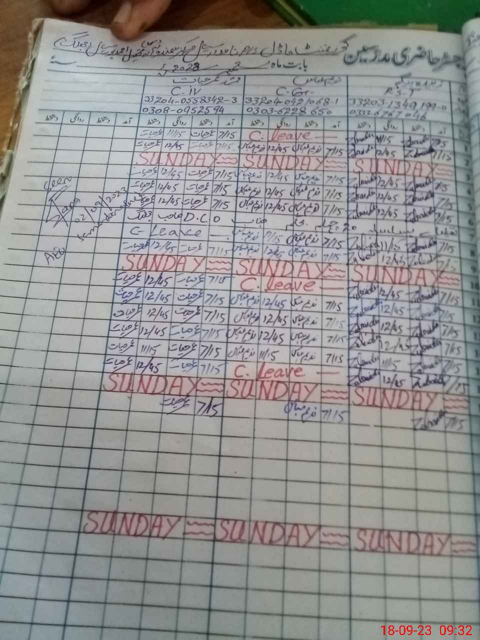 | CNIC | Full Name | Designation | R/C | Absence During Last Calender Month |