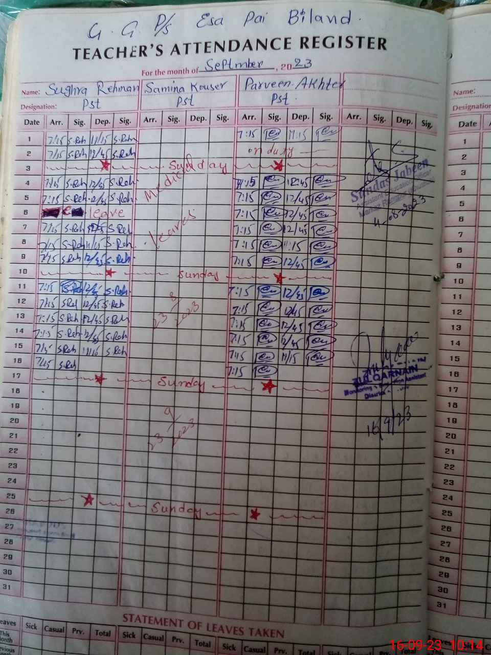 | Leave | Duty | Absent | Maternity | Medical | Ex- Pak |