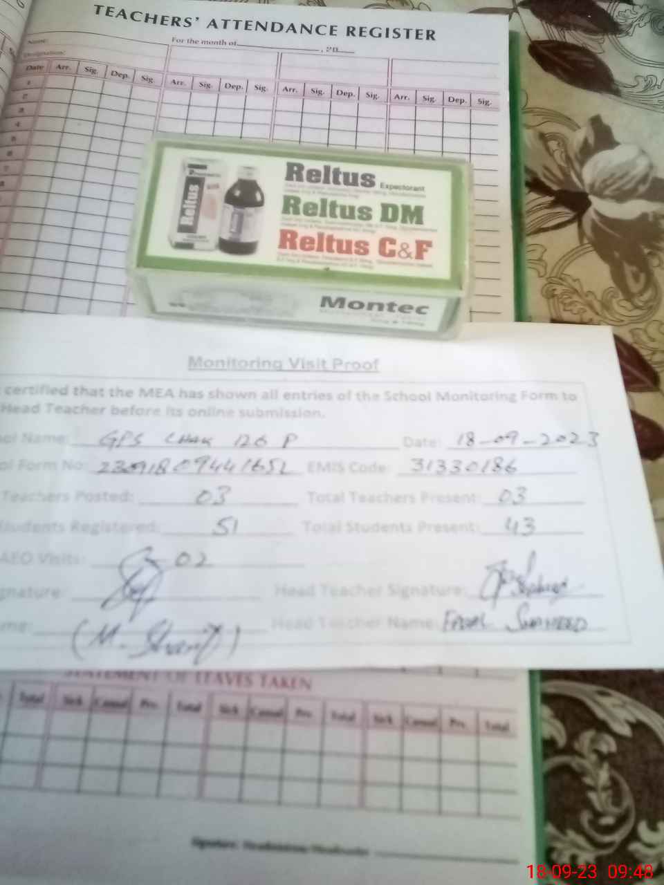 | Attendance Register | Head Teacher | MEA with School | Visit Proof |