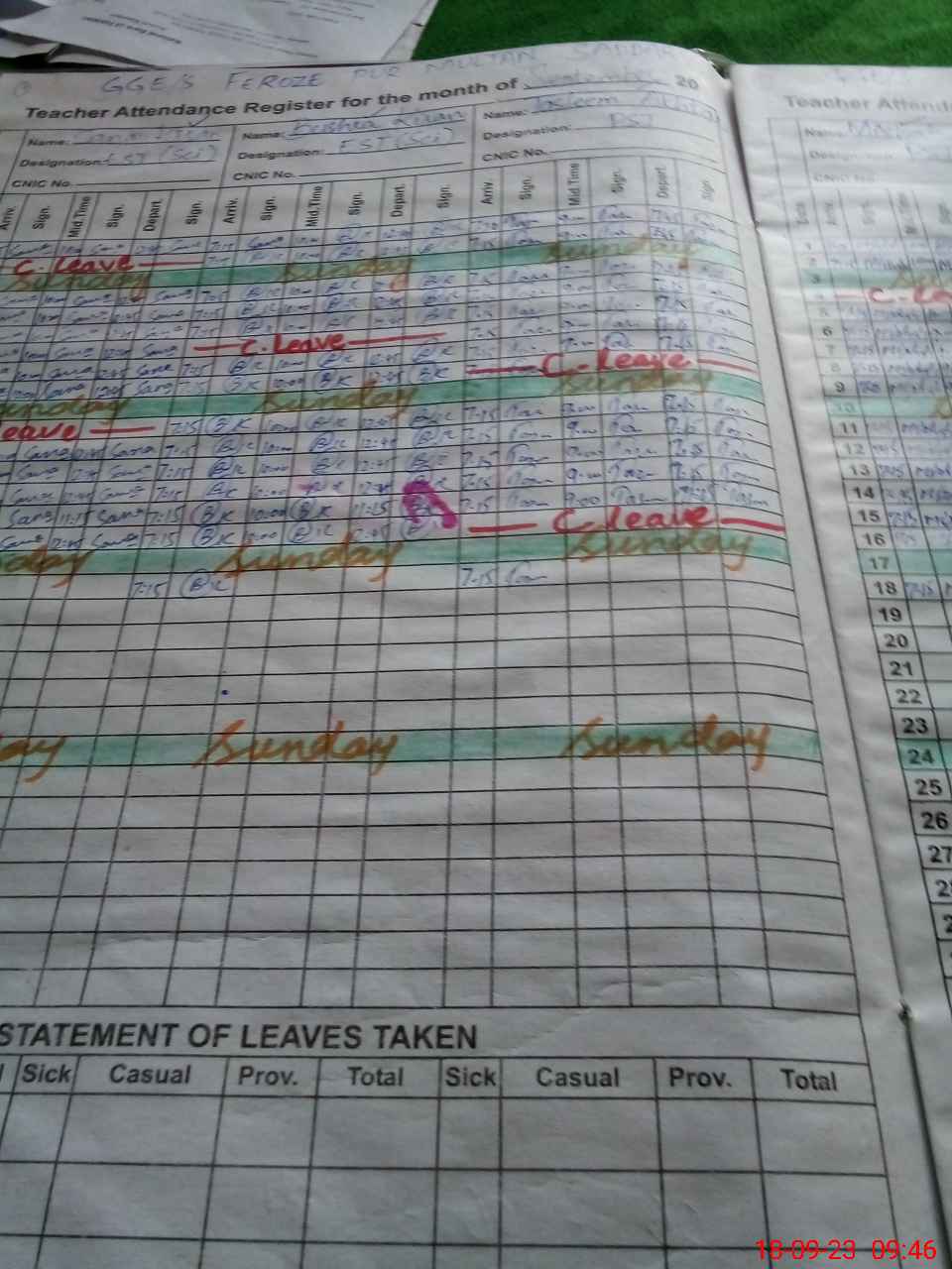 | CNIC | Full Name | Designation | R/C | Absence During Last Calender Month |