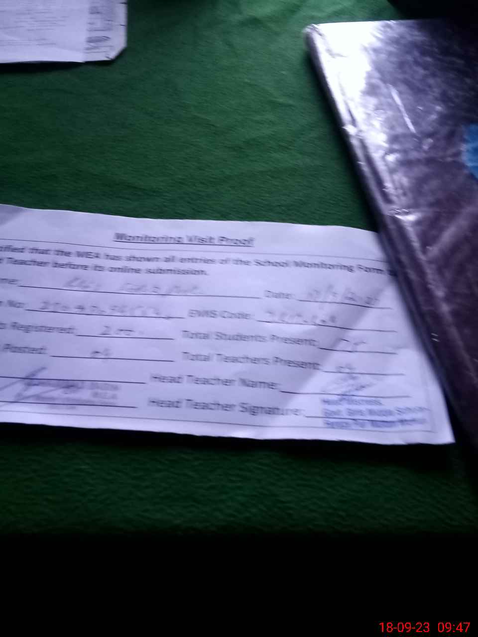 | Attendance Register | Head Teacher | MEA with School | Visit Proof |