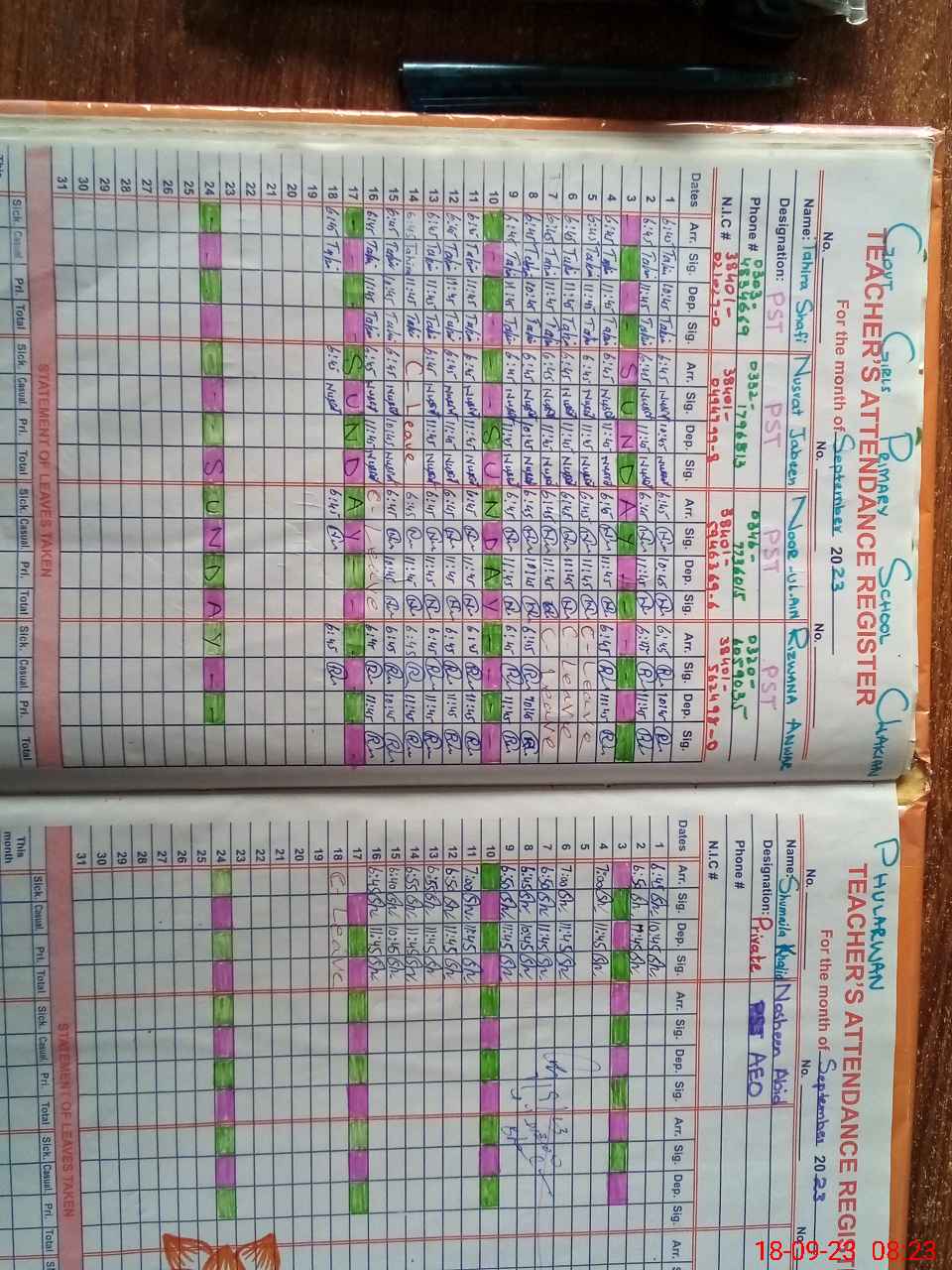 | Name: RI**** AN**** Designation: (School Headmaster's/Headmistress's) PST Phone/Cell Number: 03**** |