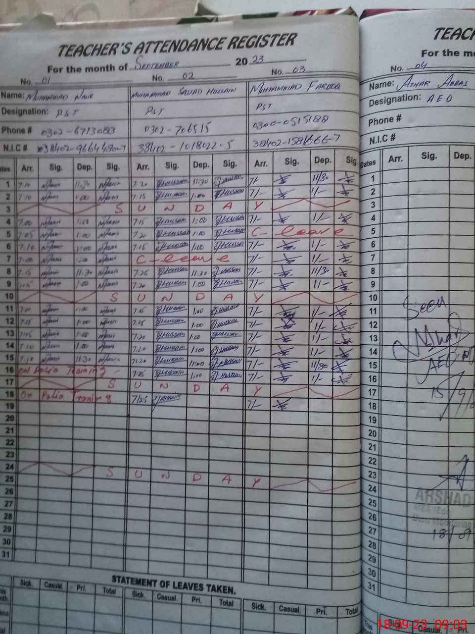| Name: MU**** NA**** Designation: (School Headmaster's/Headmistress's) ESE Phone/Cell Number: 03**** |