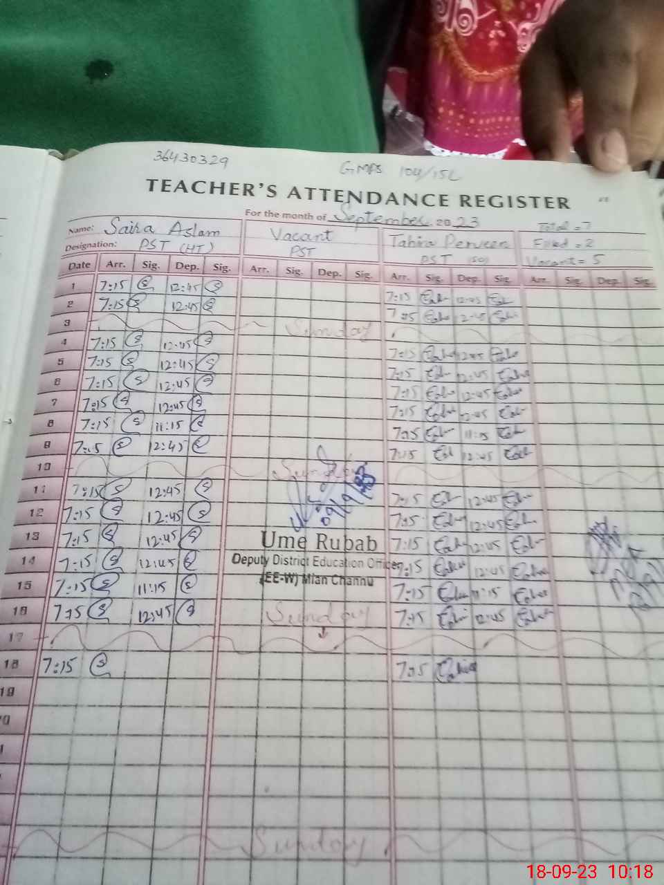 | Name: Sa**** As**** Designation: (School Headmaster's/Headmistress's) PST Phone/Cell Number: 03**** |