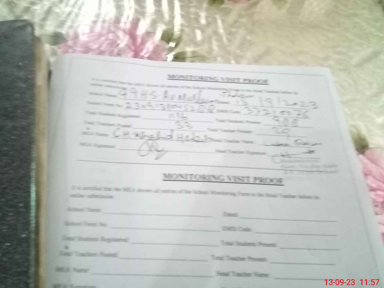 | Certified that this School was Inspected by the Undersigned MEA/DMO Today and the Information Stated Above is as Per Record. | |||||