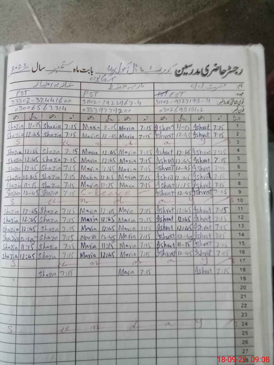 | Name: IS**** BB Designation: (School Headmaster's/Headmistress's) EST Phone/Cell Number: 03**** |