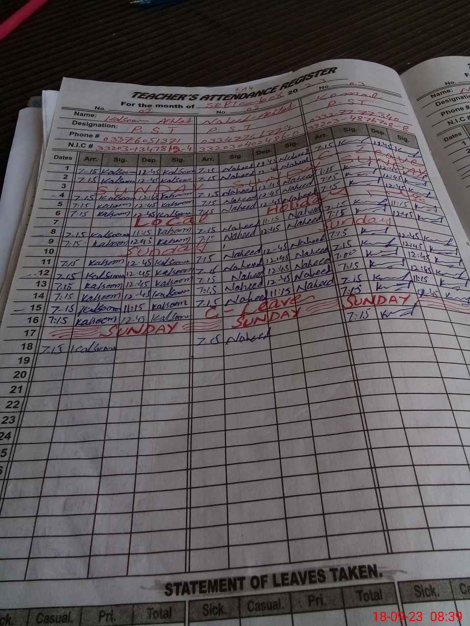 | Name: KA**** AK**** Designation: (School Headmaster's/Headmistress's) PST Phone/Cell Number: 03**** |
