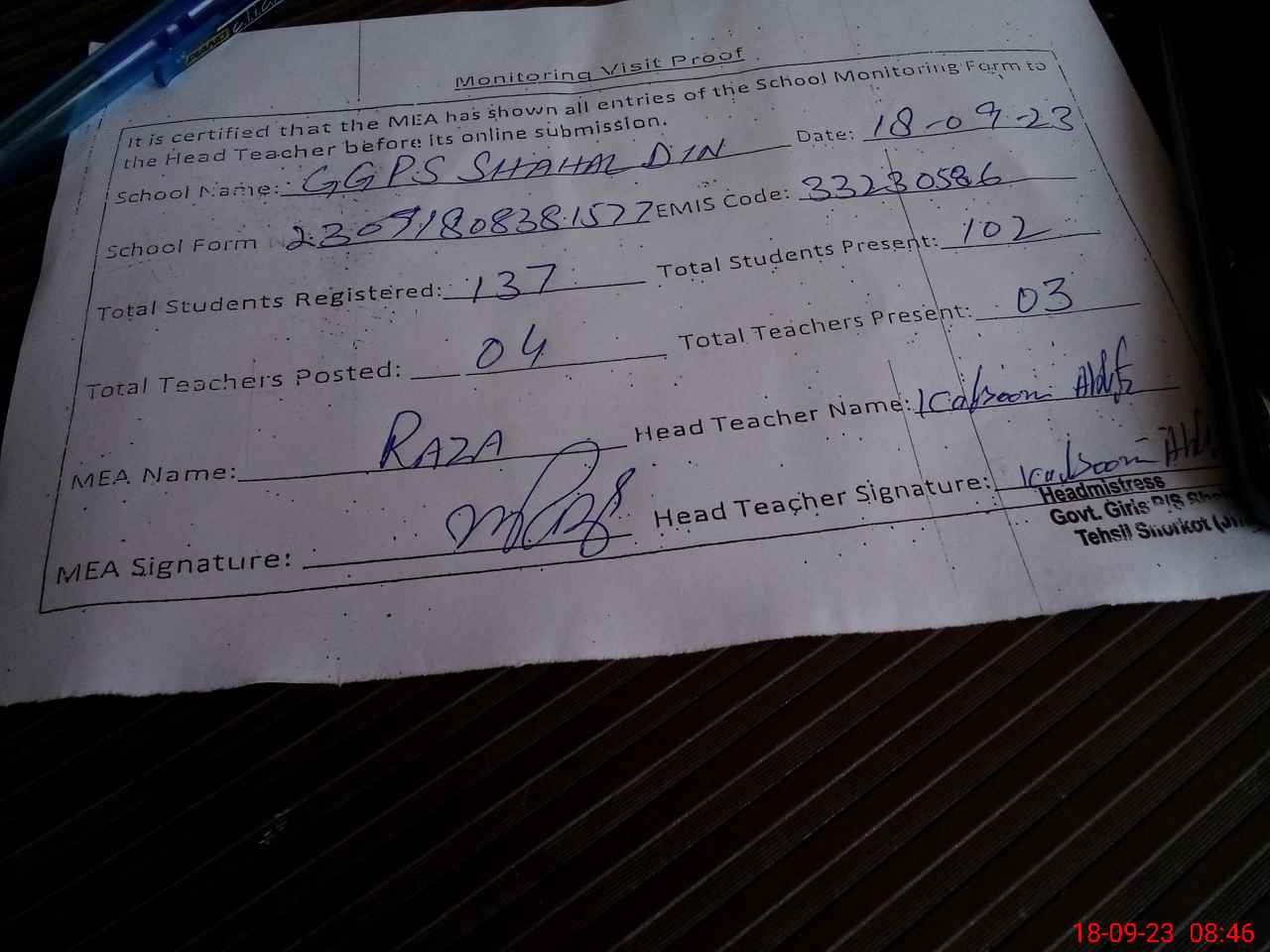 | EMIS Code: 33230586 | Name of School: GGPS SHAHAL DIN | |||