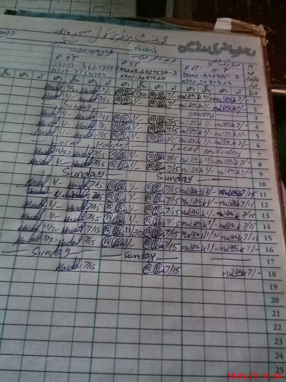| Name: MU**** AL**** Designation: (School Headmaster's/Headmistress's) PST Phone/Cell Number: 03**** |