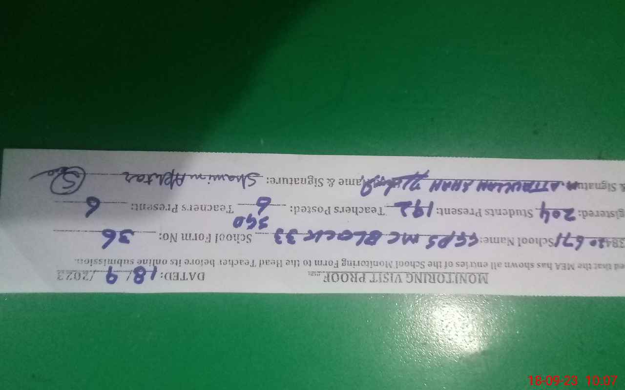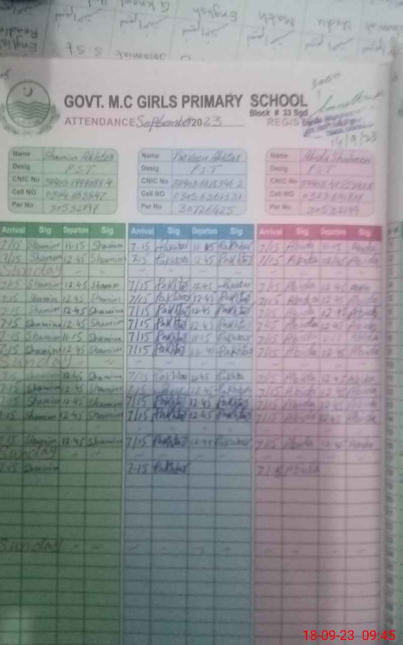 | EMIS Code: 38420671 | Name of School: GGPS MC BLOCK NO.33 SARGODHA | |||