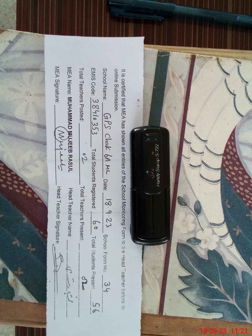 | EMIS Code: 38410353 | Name of School: GPS CHAK NO.6-A ML | |||