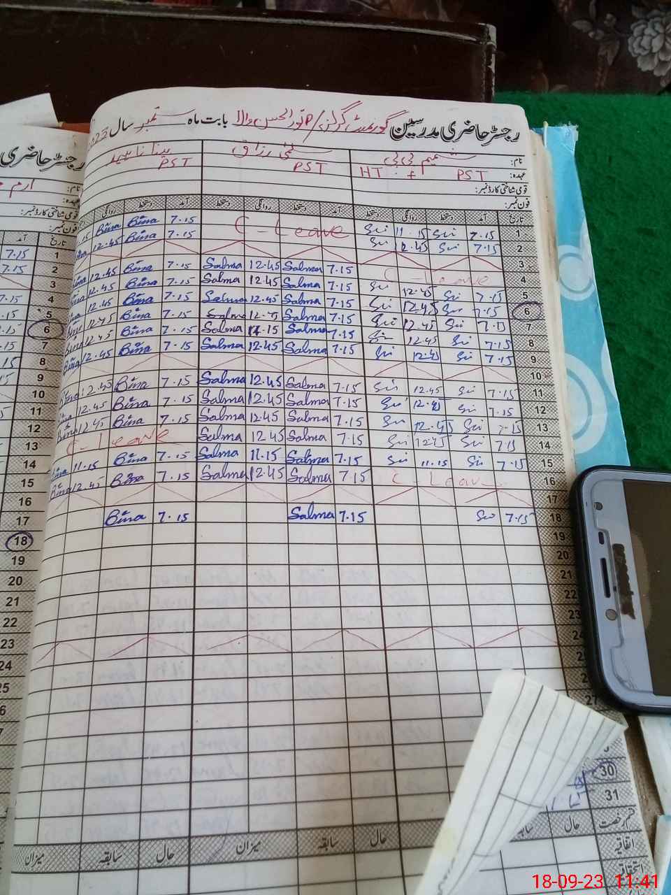 | CNIC | Full Name | Designation | R/C | Absence During Last Calender Month |