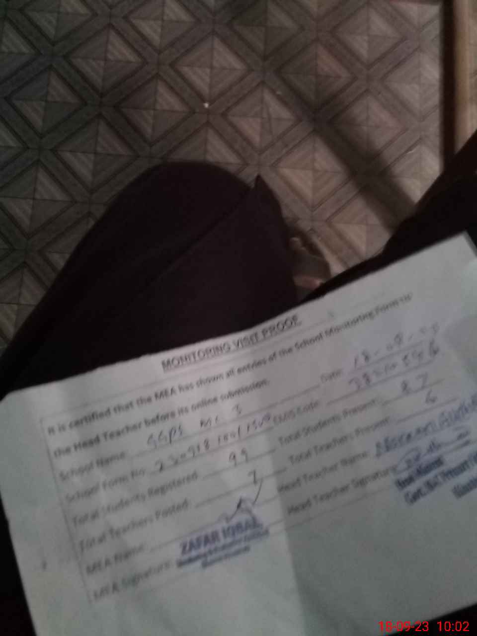 | Monitoring Date: 18-09-2023 | Start Time: 18-09-2023 09:29 AM | End Time: 18-09-2023 10:03 AM | Name of MEA: ZA**** IQ**** | |