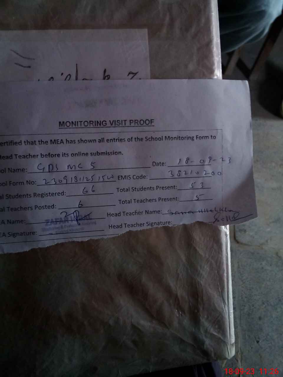 | EMIS Code: 38210200 | Name of School: GPS MC NO. 5 KHUSHAB | |||