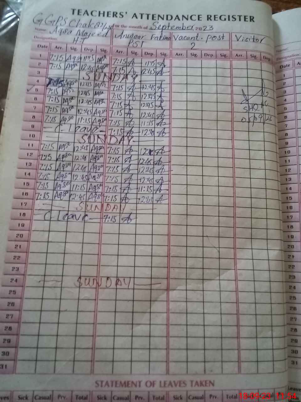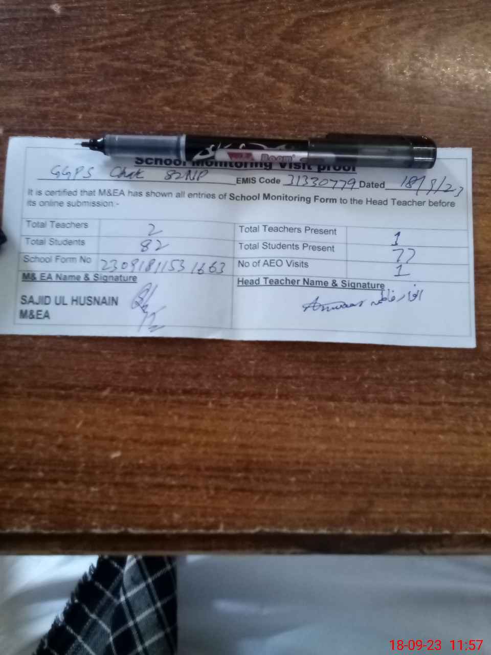 | Attendance Register | Head Teacher | MEA with School | Visit Proof |