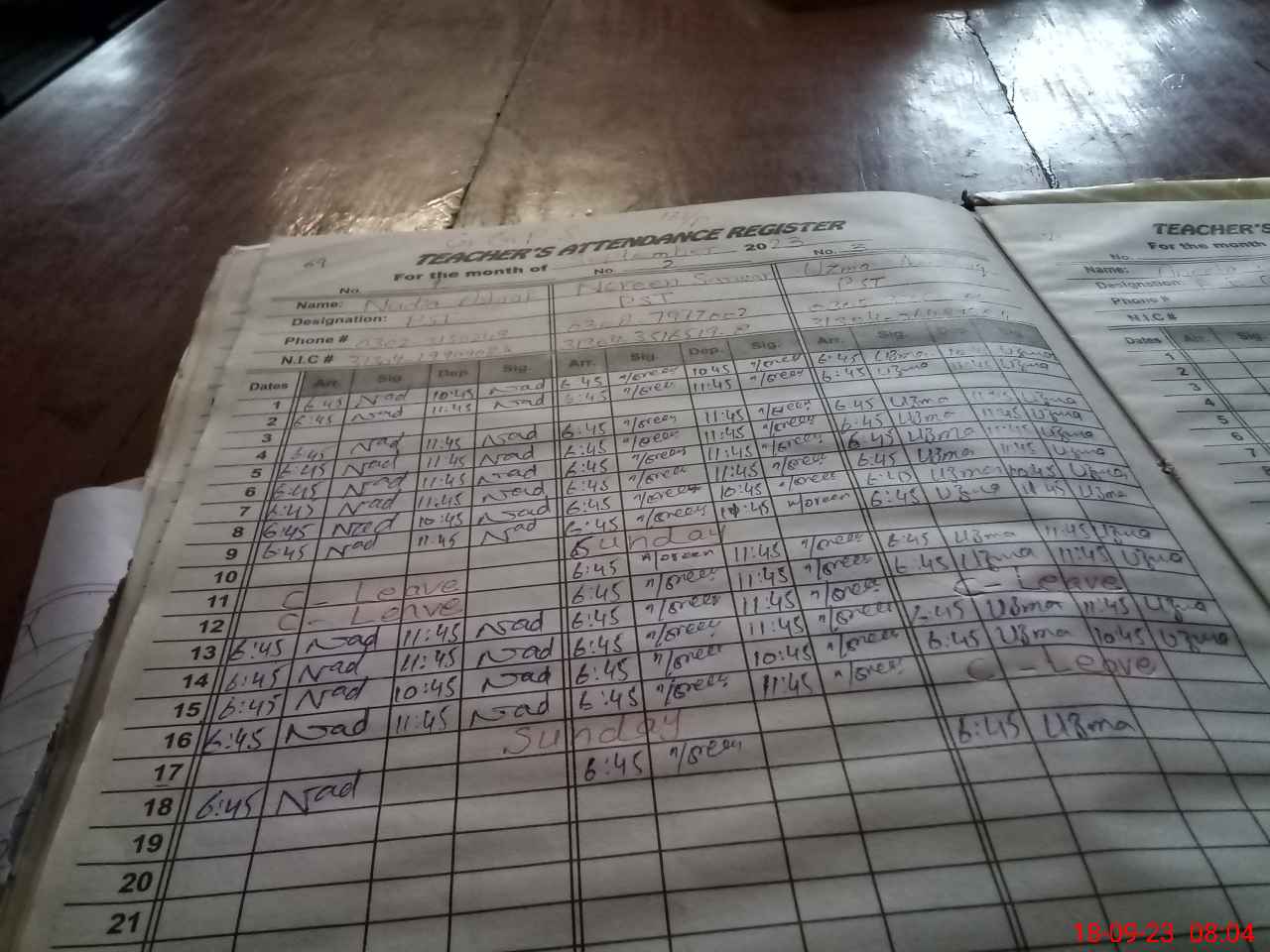 | Name: Uz**** Mu**** Designation: (School Headmaster's/Headmistress's) PST Phone/Cell Number: 03**** |