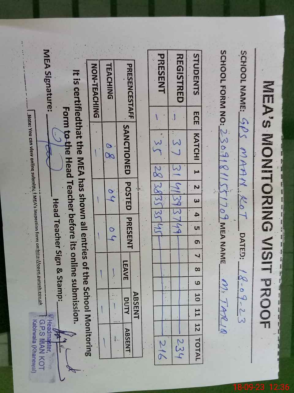 | EMIS Code: 36410311 | Name of School: GPS MAAN KOT, NAWAN SHEHR | |||