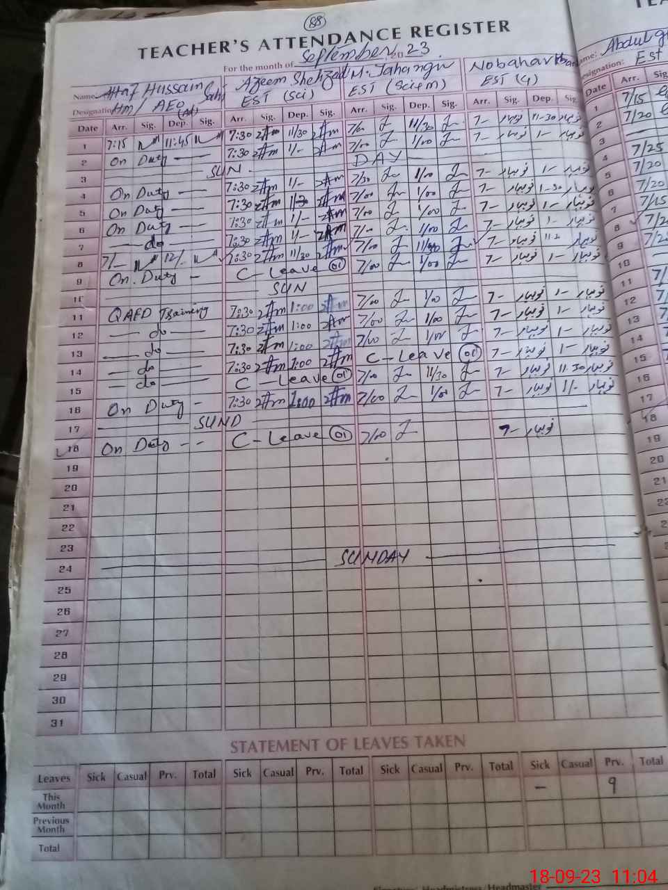 | Leave | Duty | Absent | Maternity | Medical | Ex- Pak |
