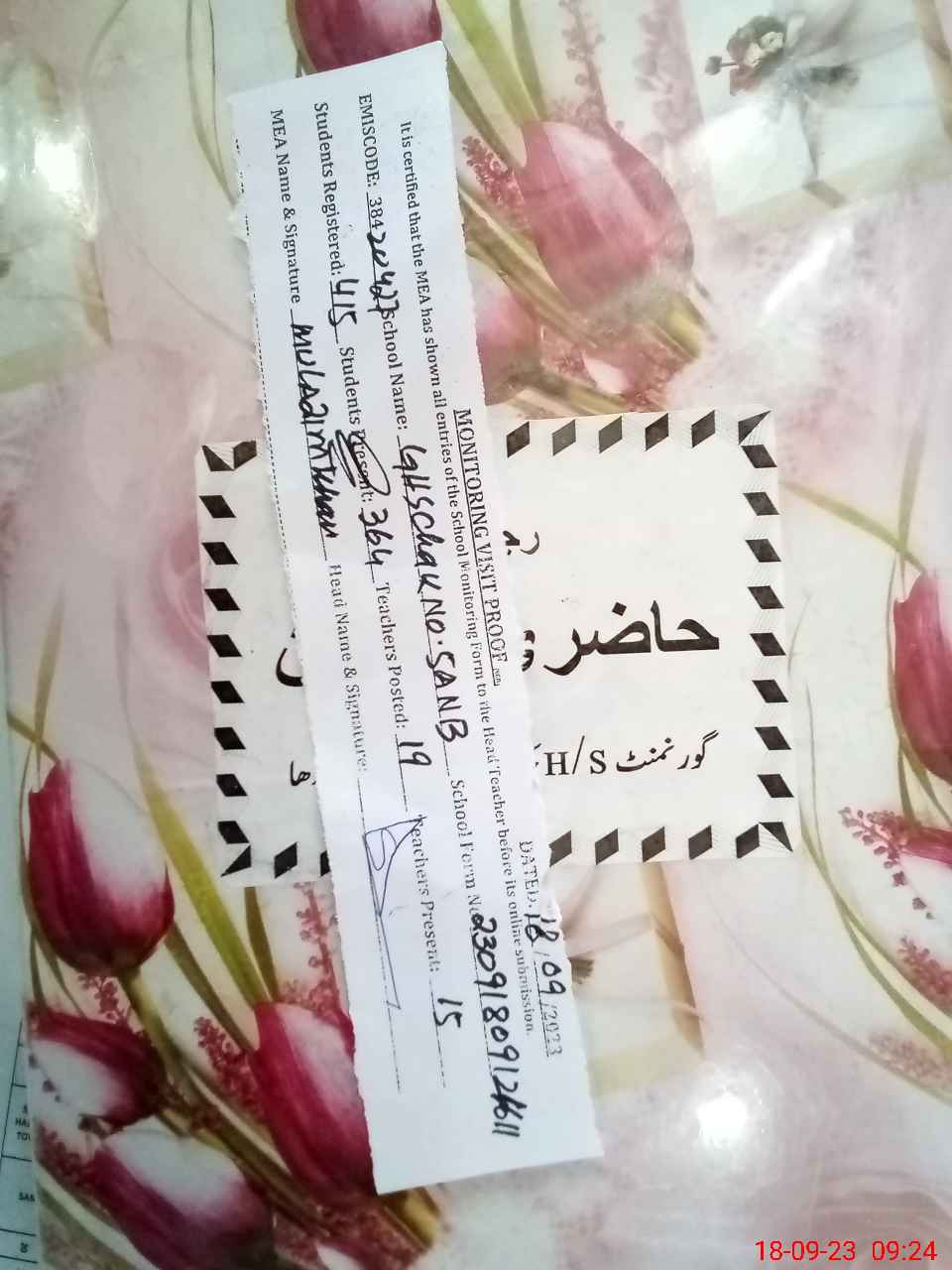 | Attendance Register | Head Teacher | MEA with School | Visit Proof |