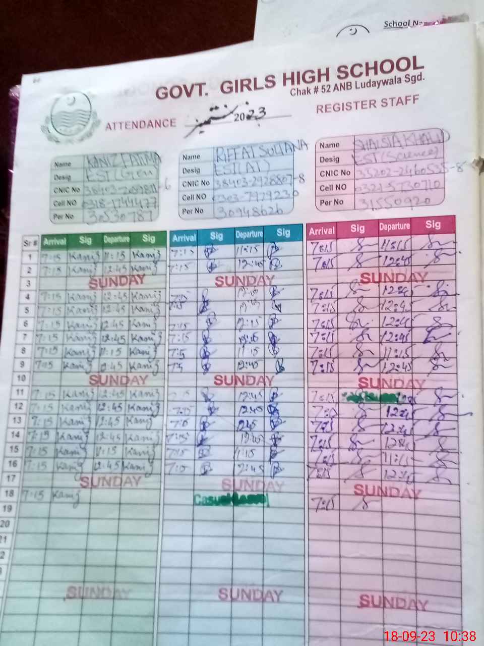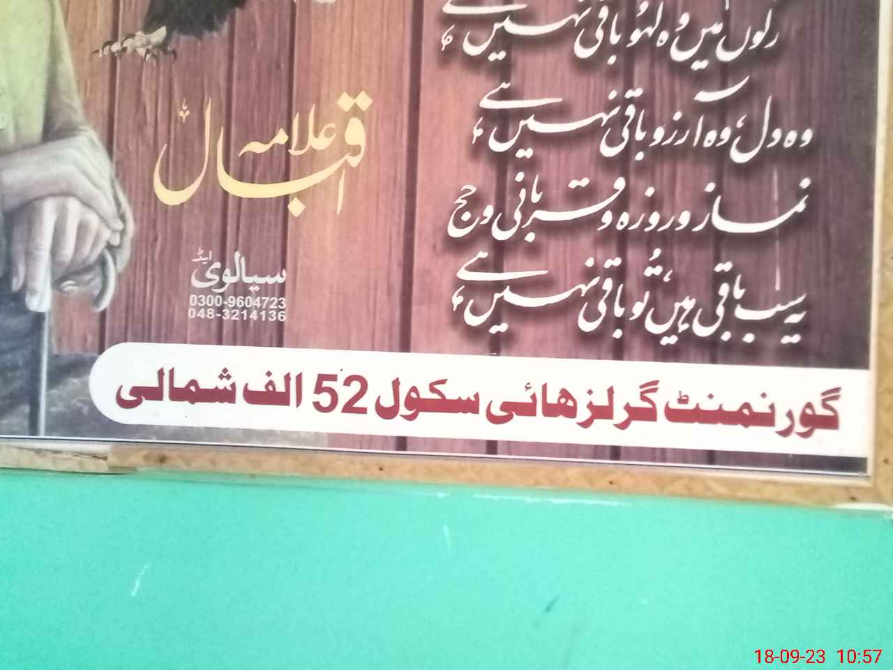 | EMIS Code: 38420693 | Name of School: GGHS CHAK NO.52 A-NB LUDAY WALA | |||