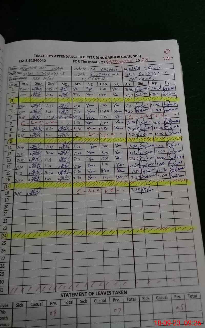 | Name: As**** Al**** Sh**** Designation: (School Headmaster's/Headmistress's) S.S E Phone/Cell Number: 03**** |
