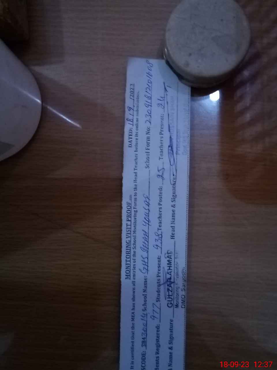 | Attendance Register | Head Teacher | MEA with School | Visit Proof |