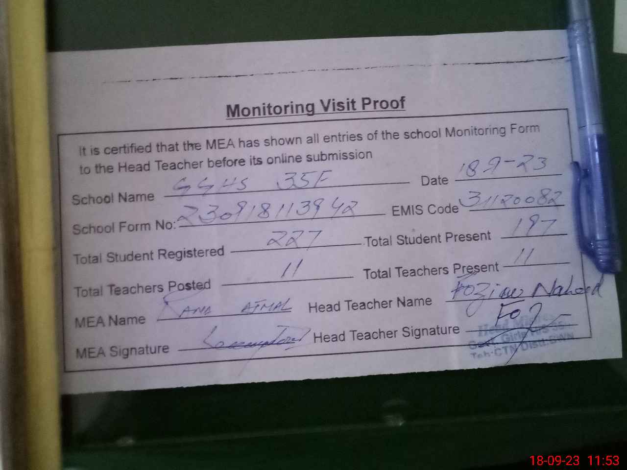 | EMIS Code: 31120082 | Name of School: GGHS CHAK NO. 35/F | |||
