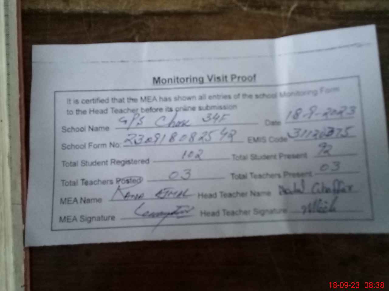 | EMIS Code: 31120375 | Name of School: GPS CHAK NO 34/F | |||