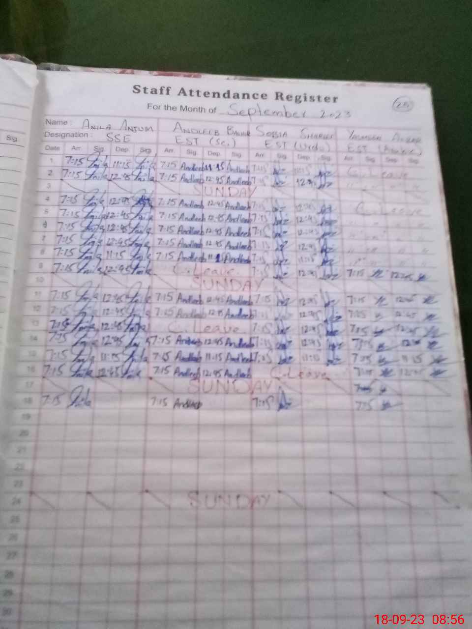 | Monitoring Date: 18-09-2023 | Start Time: 18-09-2023 08:53 AM | End Time: 18-09-2023 09:30 AM | Name of MEA: Ra**** Mu**** Aj**** BN**** 22 | |