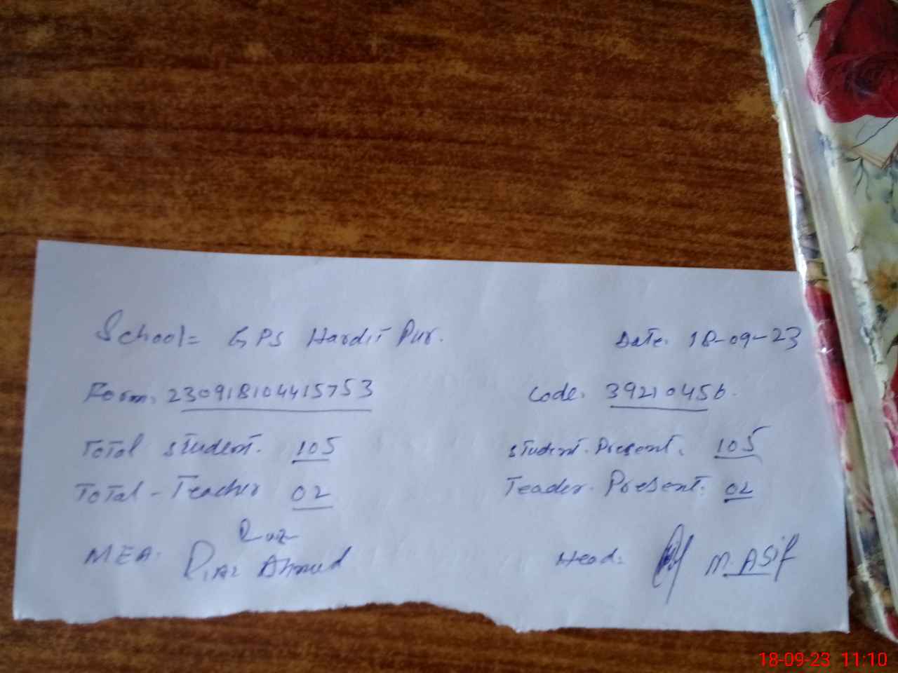 | EMIS Code: 39210456 | Name of School: GPS HARDIT PUR | |||