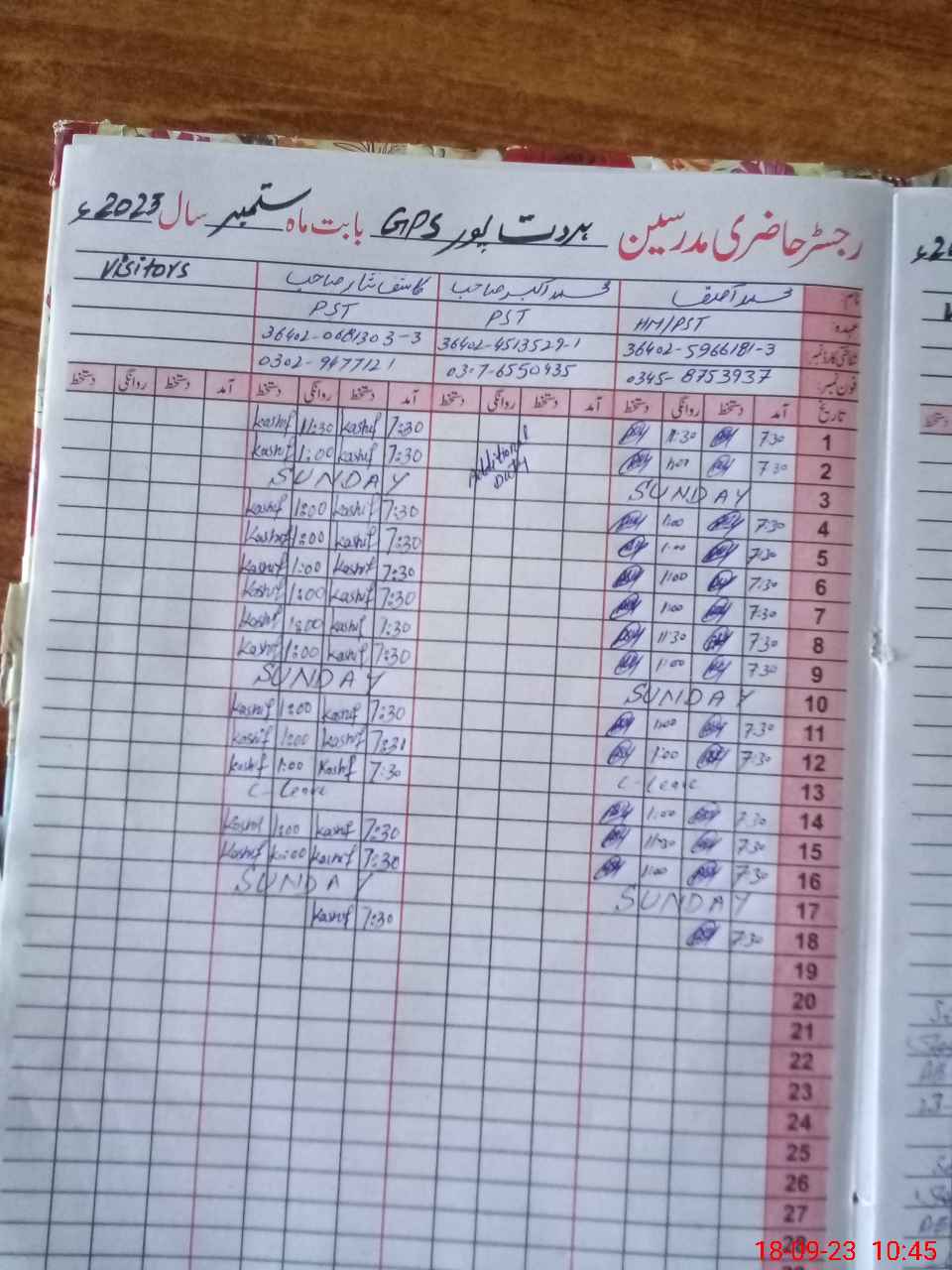 | Name: Ka**** Ni**** Designation: (School Headmaster's/Headmistress's) PST Phone/Cell Number: 03**** |