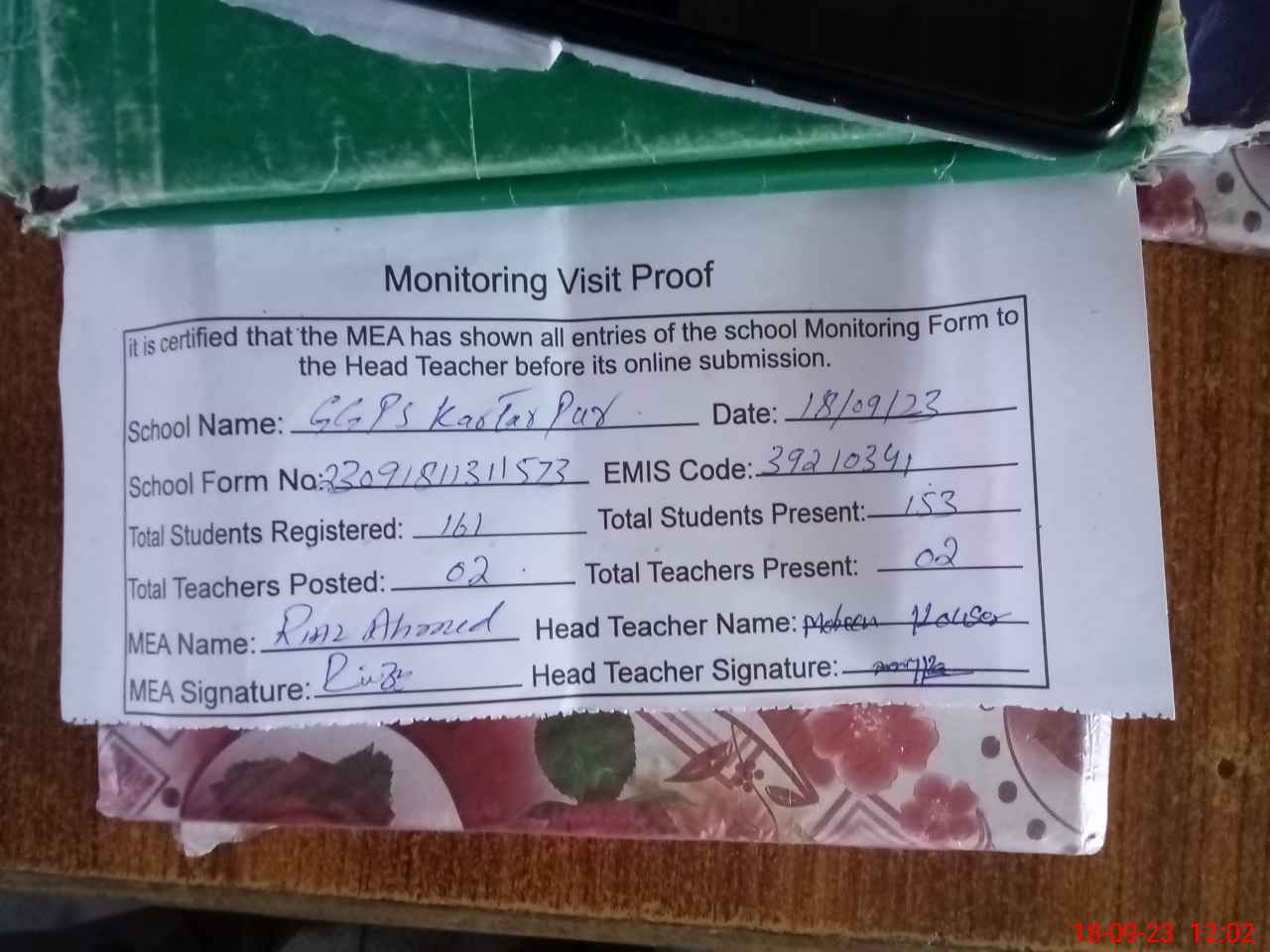 | EMIS Code: 39210341 | Name of School: GGPS KARTAR PUR PAKPATTAN | |||