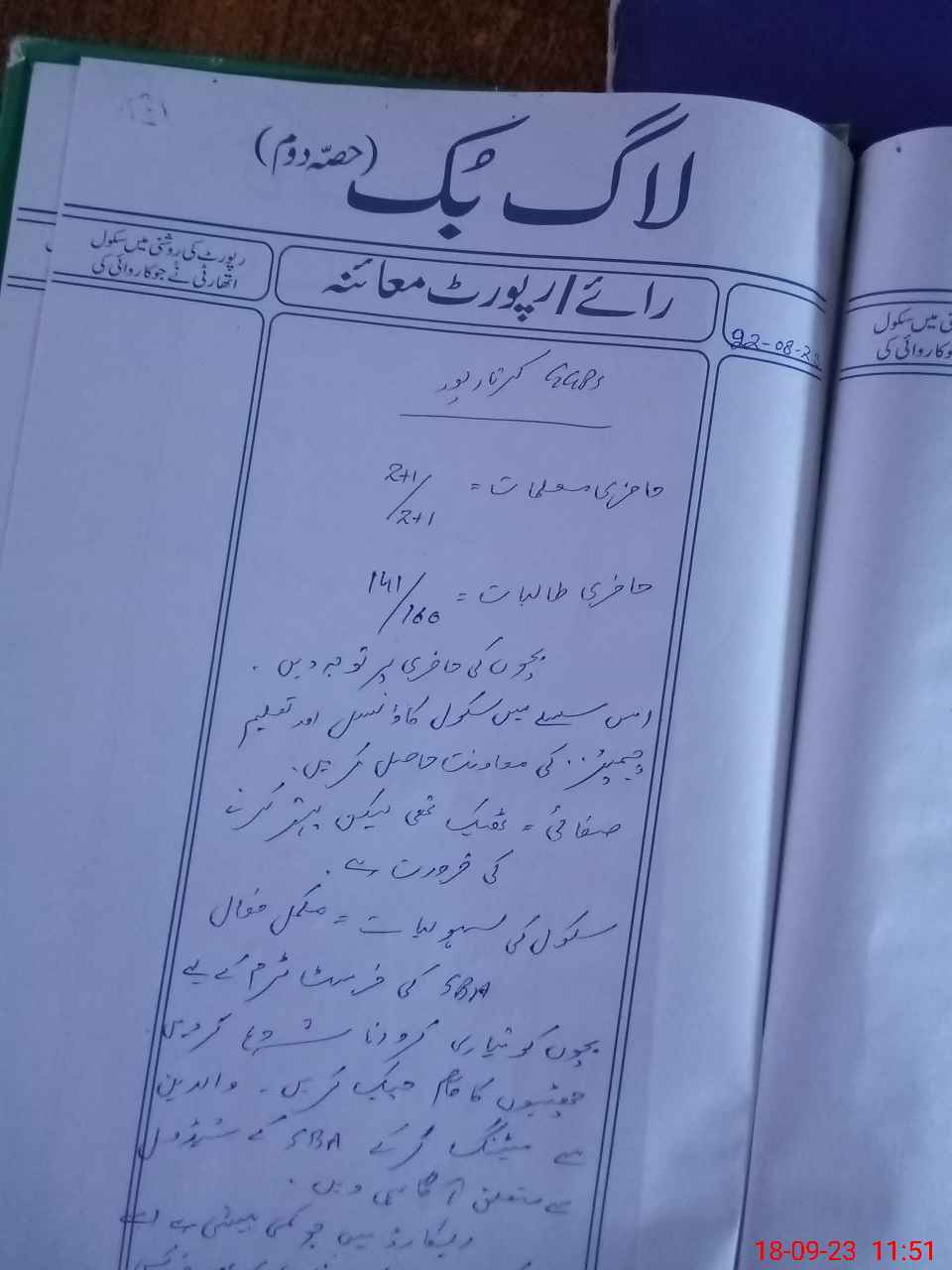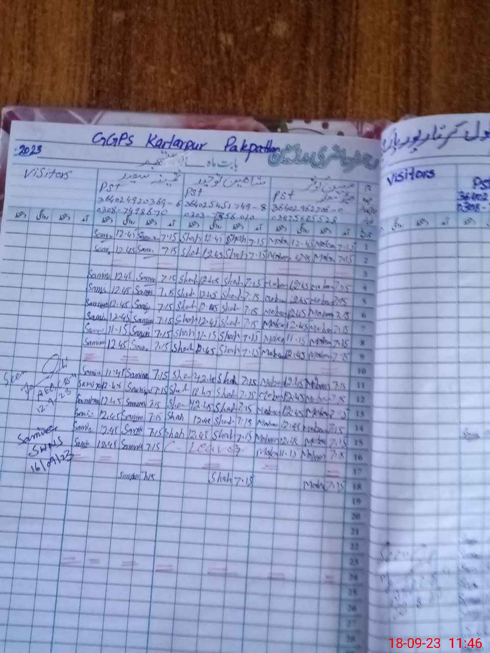 | Remarks (Use Separate Page if Required): PST Samina Saeed posted at 61SP GGPS but now duty at GGPS Kartar Pur without any official Letter from Department Class rooms White Boards are damaged should be replaced immediately | |||||