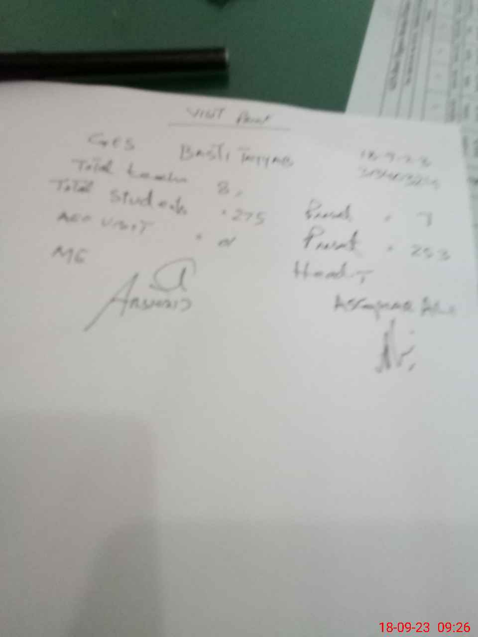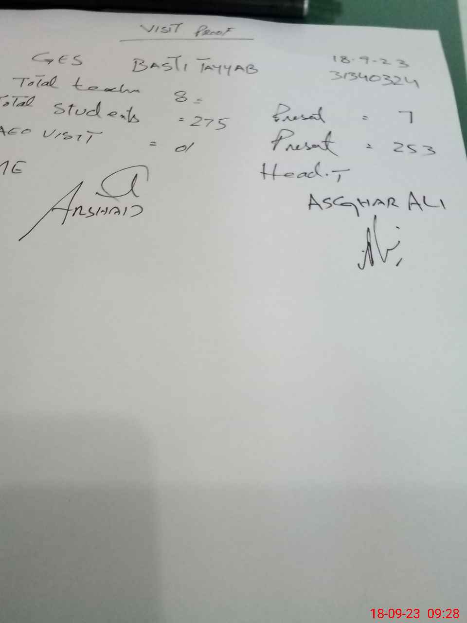 | Attendance Register | Head Teacher | MEA with School | Visit Proof |