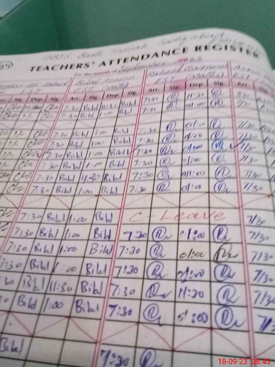 Leave Type | Remarks for today (Leave,Training, Exam,Absent,Late, Other duty) |