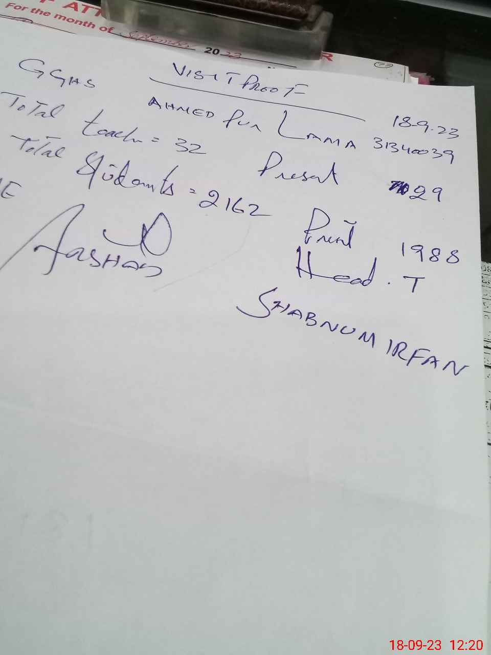 | EMIS Code: 31340039 | Name of School: GGHS AHMAD PUR LAMMA | |||
