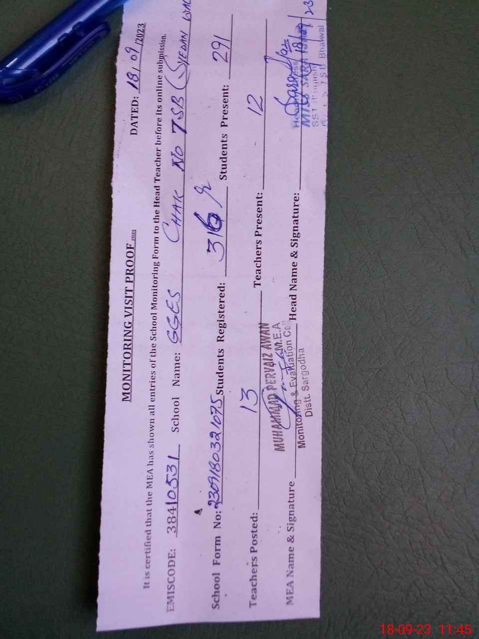 | EMIS Code: 38410531 | Name of School: GGES CHAK NO. 7 SB SYEDAN WALA | |||