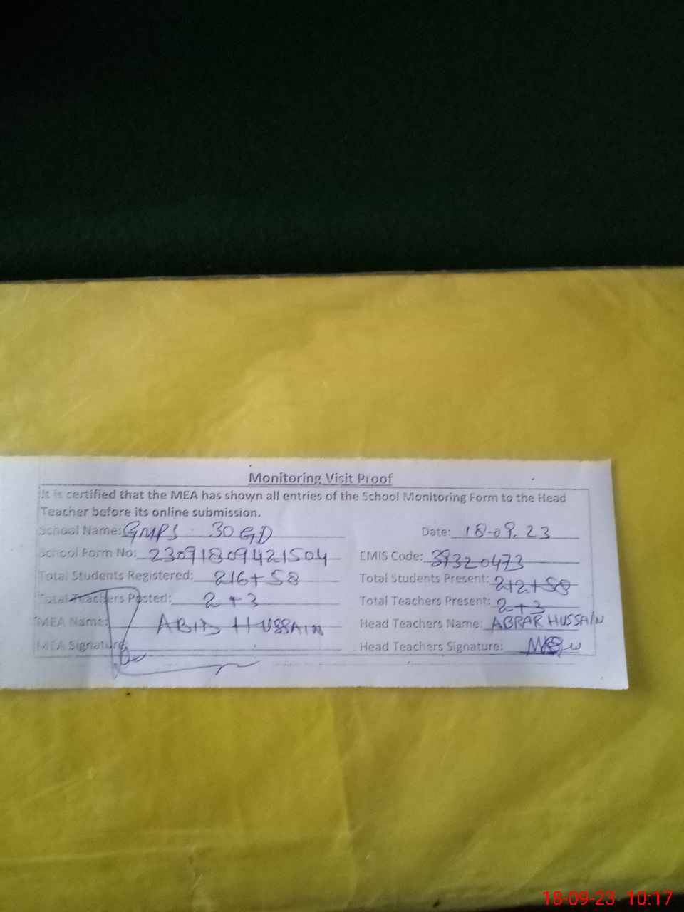 | EMIS Code: 39320473 | Name of School: GMPS 30/G.D | |||