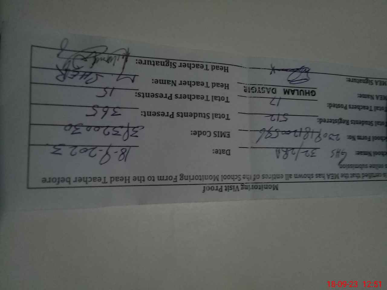 | Name: Ra**** Ah**** Al**** Designation: (School Headmaster's/Headmistress's) HM Phone/Cell Number: 03**** |