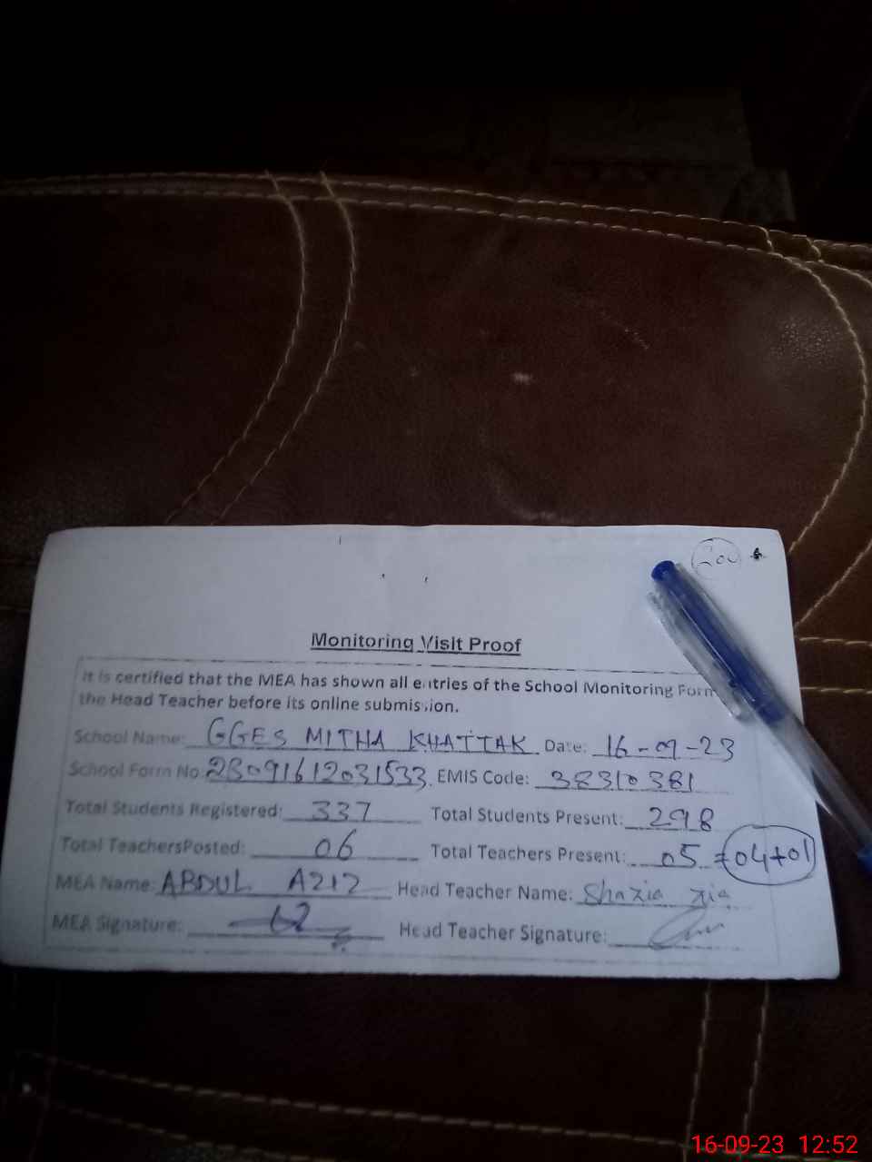 | EMIS Code: 38310381 | Name of School: GGES MITHA KHATTAK | |||