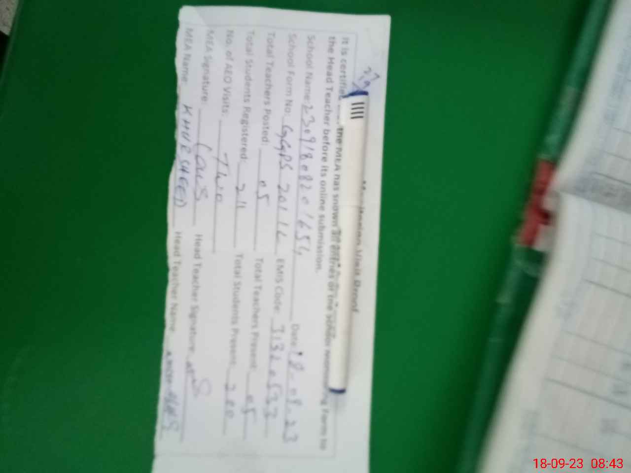 | Name: NO**** AK**** Designation: (School Headmaster's/Headmistress's) PST/PTC/JV Phone/Cell Number: 03**** |