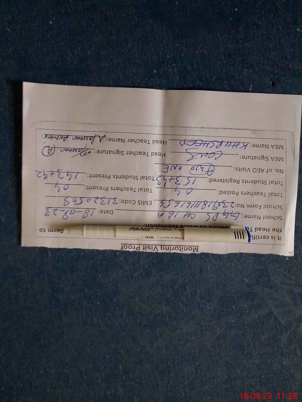 | Attendance Register | Head Teacher | MEA with School | Visit Proof |